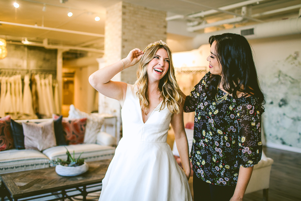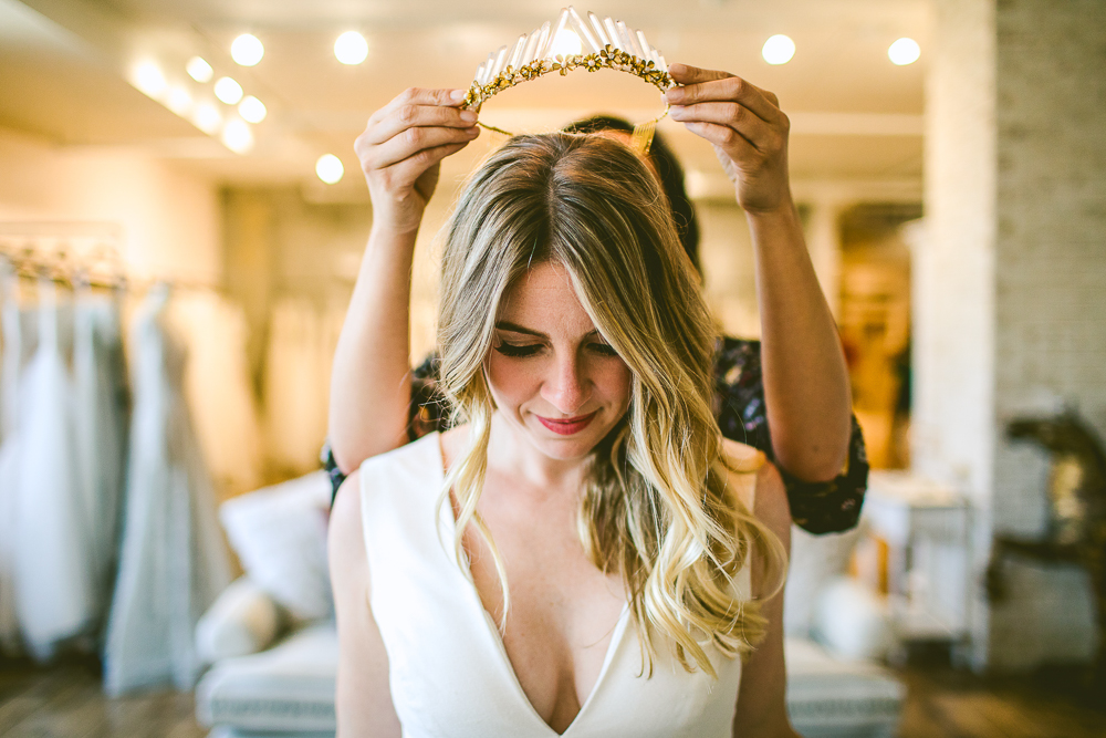 As wedding dress stylists, it is important to us to make sure the bride feels that she has tried all the options she needs to. In terms of the dress, this means different fabrics, silhouettes, and even colors. As for accessories, this is where a lot of the fun happens.