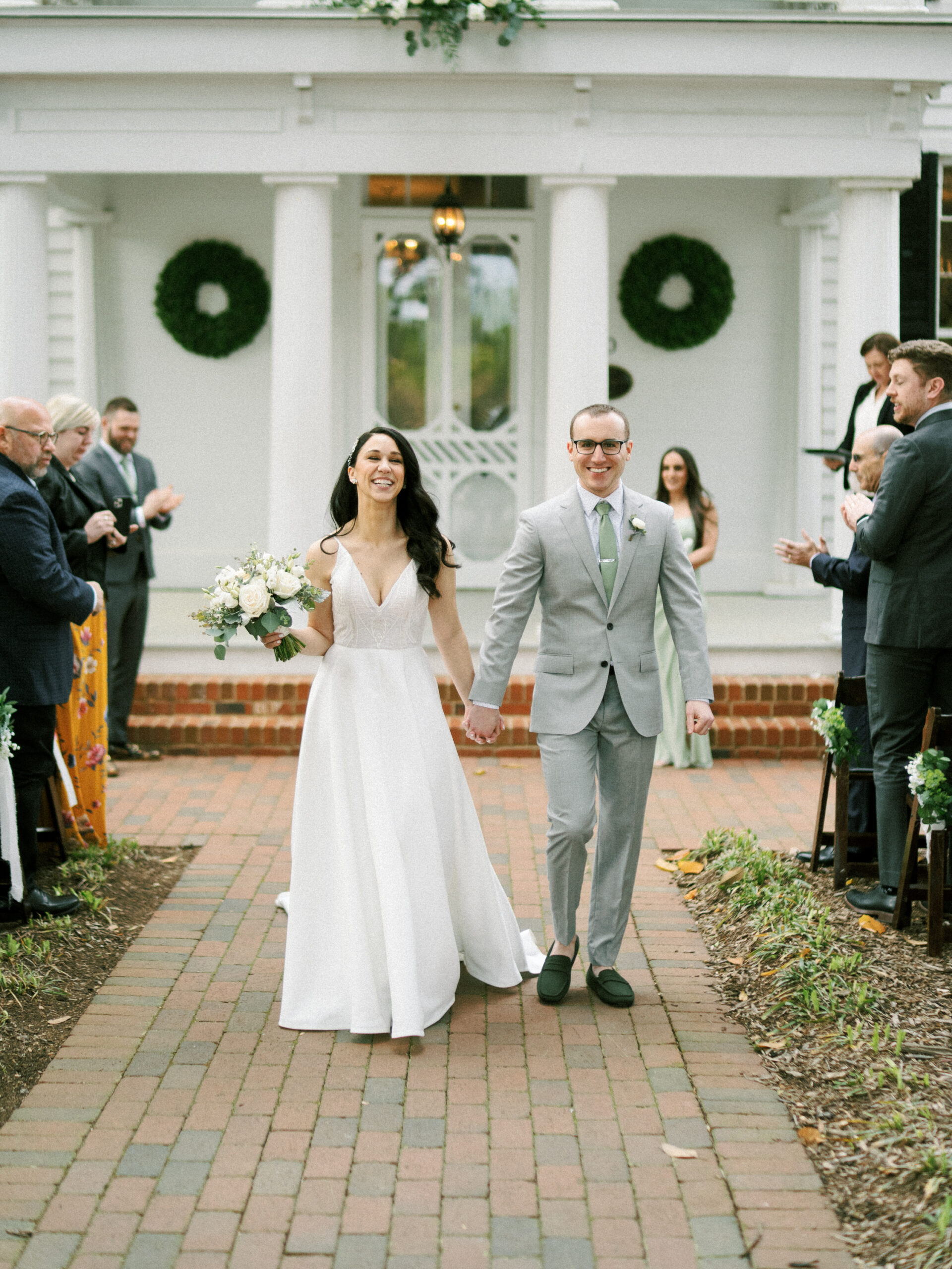 I don’t even know where to start because everything was more amazing than I even imagined it could be. We had an intimate wedding of 30 guests, because we really wanted our closest people there since all but 1 guest would be coming in from other states (Alex and I moved to NC from Boston in September 2020). Our small guest count was really one of my favorite parts because we got to spend time with everyone and also eat dinner and be on the dance floor. It also allowed for the most beautiful and intimate seating arrangement for dinner, created by our planning team, Mad Dash Weddings. Since I’m still obsessed with our tablescapes/seating arrangements, I want to give a little shout out to the planners because they made every little detail so personal and beautiful.