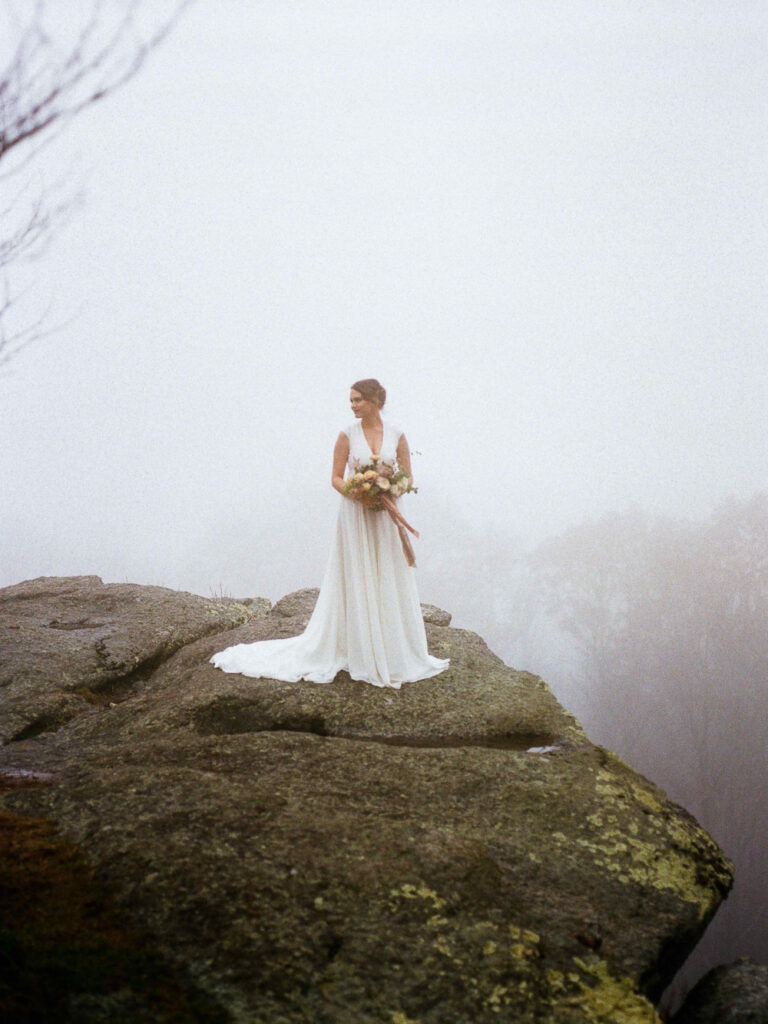 For this couple it was love at first sight and together the are the perfect combination of adventure and stability. The shoot was chosen to take place in the cool misty mountains, where they feel most at home because of peace and the surrounding beauty in every direction. Everything incorporated was thoughtfully created and designed specifically for this couple and the scenery around them. The mix of organic soft colors and sweeping views adds even more romance to the love story between these two. This day, this moment, was built for them; it was meant to commemorate the start of their legacy together.